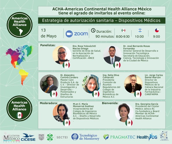 México 8:00 hs | Argentina 10:00 hs | Chile 9:00 hs ACHA – Americas Continental Health Alliance tiene el agrado de invitarlos al evento online:Estrategia de autorización sanitaria – Dispositivos Médicos Duración: 90