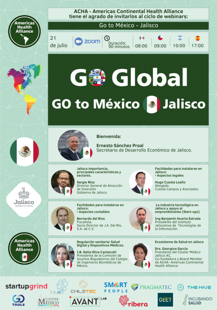 11:00 ARG | 09:00 MEX | 10:00 Chile | 16:00 España ACHA-Americas Continental Health Alliance, junto con importantes socios en LATAM y Europa, lanzó “GO GLOBAL – ACHA”, un programa único para empresas